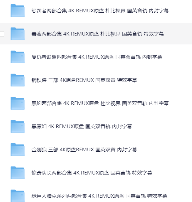 - 7漫威系列电影合集50部4K完整1080P清晰国英双语音轨内封中英特效字幕收藏版